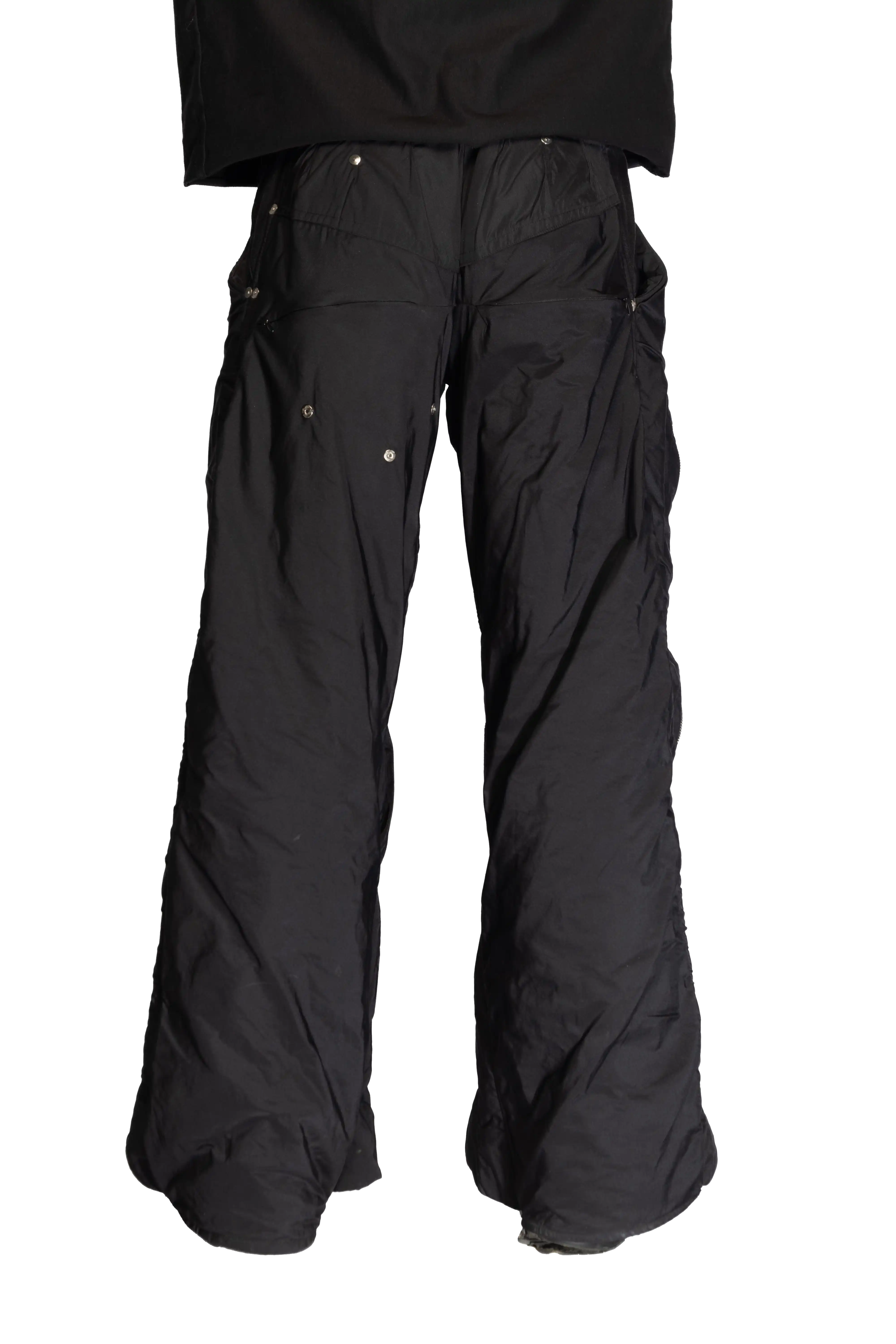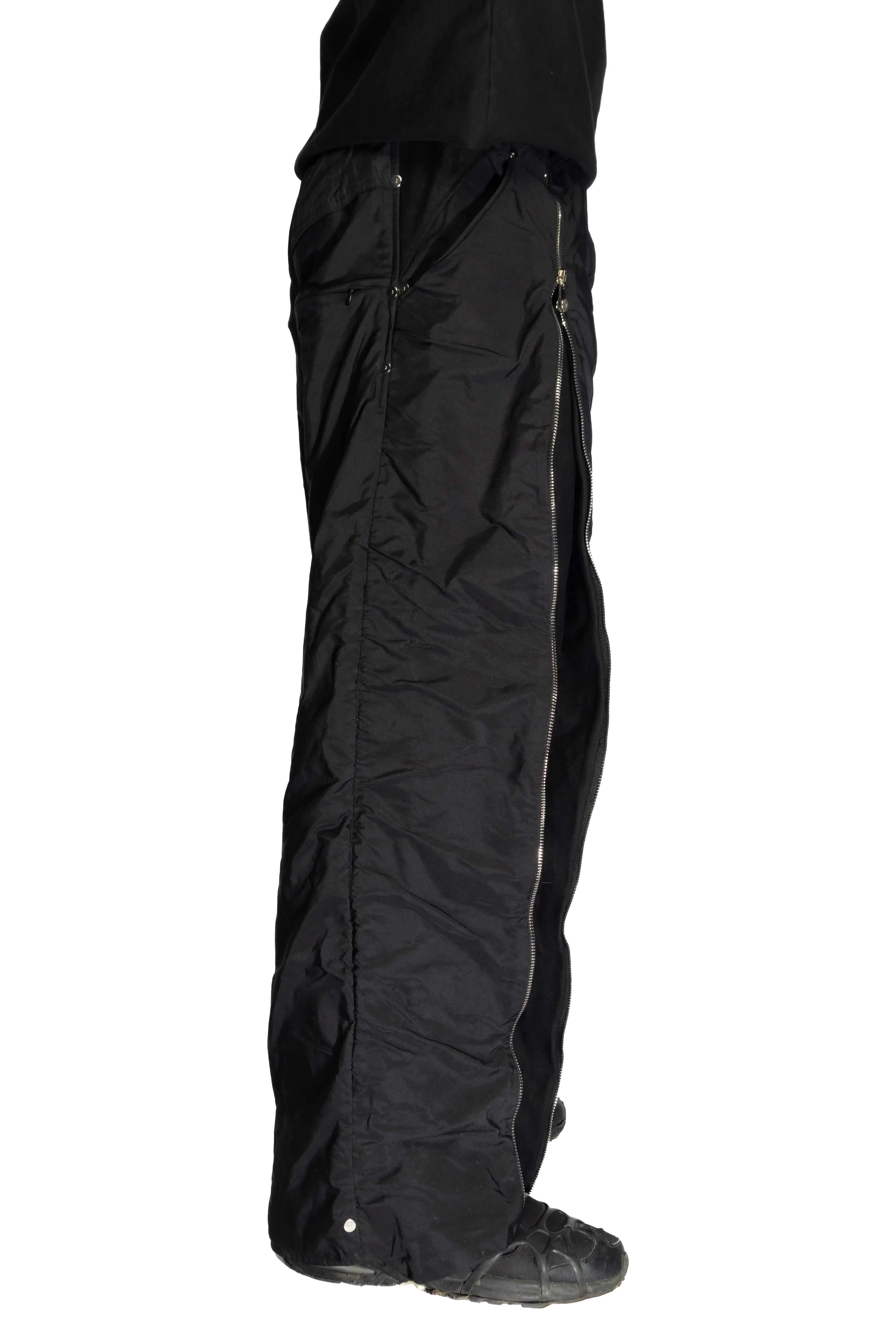 Pantalon en polyester à mémoire de forme doublé d’un jean 100% coton. Deux poches à l’avant et deux poches à l’arrière ainsi que deux fermeture éclaires allant de la cheville à la hanche pouvant être ouvert ou fermé.