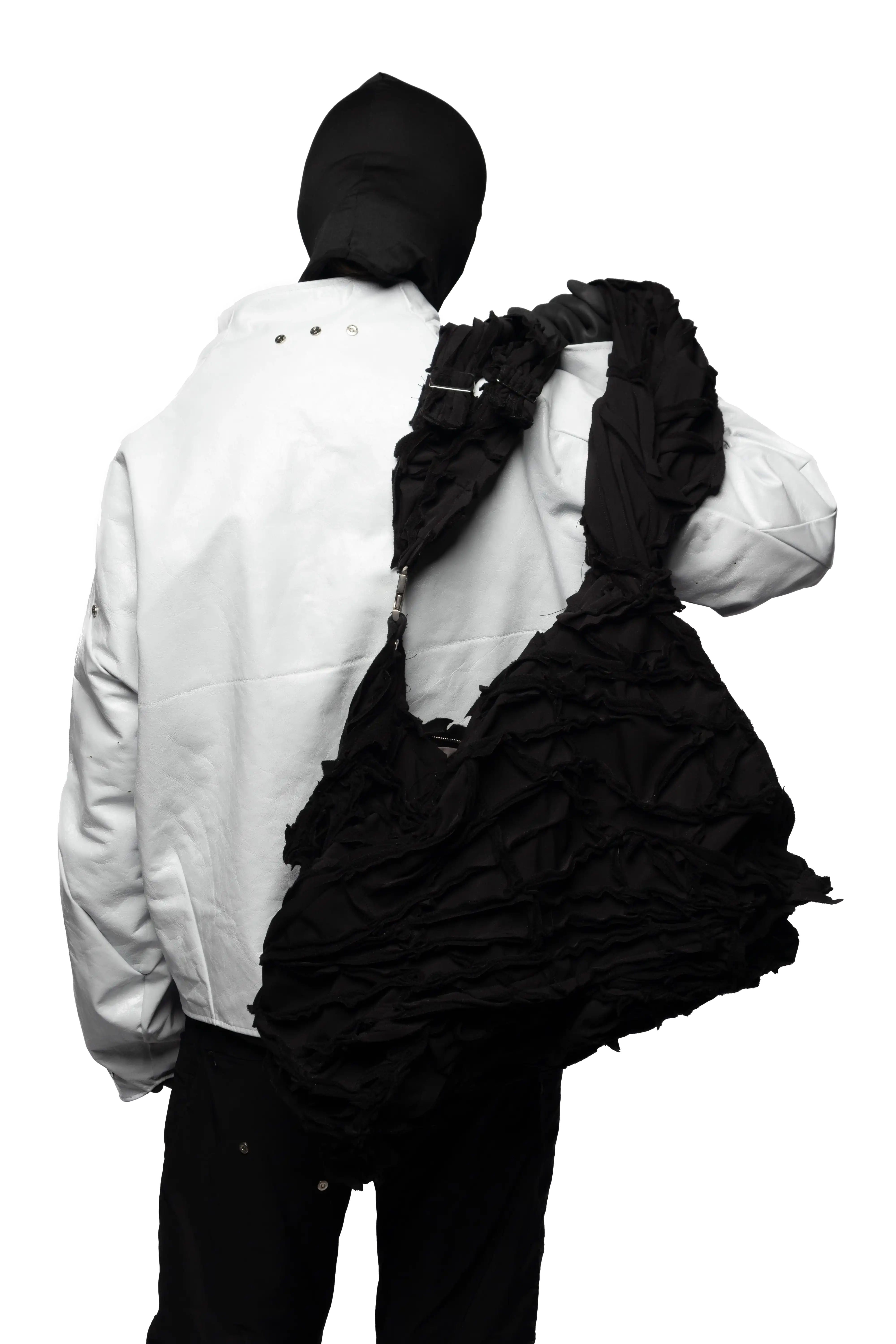 Black water-repellent neoprene bag with double adjustable handles and metal clips. A 100% polyester interior in brown/grey with an invisible interior pocket.